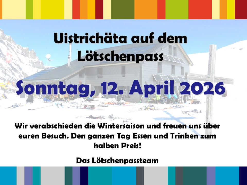 Schneeschuhtrail offen, frisch präpariert. Rückweg nach Lauchernalp am Anfang mit dem Fahrzeug gespurt, danach viel von Skifahrern begangen, gute Skispur bis zur Piste National. Gitzifurgge begangen, Abfahrt nach Ferden gefahren, bis auf wenige Minuten Fussmarsch am Schluss noch sehr gut fahrbar. Aufstieg Richtung Ferdenrothorn begangen. Wir freuen uns auf ein sonniges letztes Wochenende der Saison und haben auch für spontane Gäste noch freie Plätze. Hütte bis 12. April 20206 offen und bewartet.
